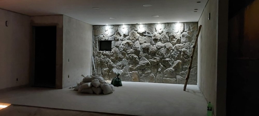 Acabamento em Pedras Naturais no Banheiro Externo e Fundo da Garagem